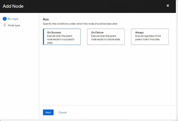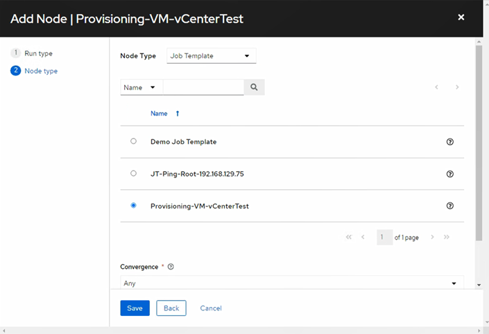 Click Add Node Execute Job Template When Request Approved (Job Template Created In Step 3.6)