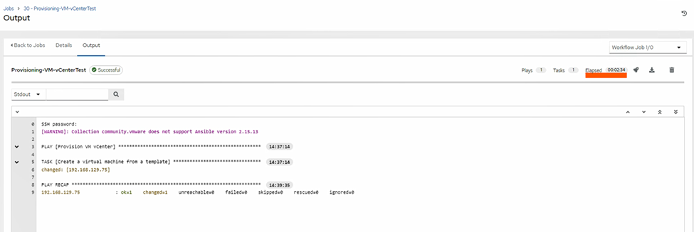 - Result: a VM with the exact requested config and static IP—SSH-ready for dev01 in ~2 minutes 35 seconds (typical lab timing; depends on template and datastore).