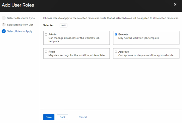 - manager01 — permissions Read & Approve (review and approve dev01’s requests)