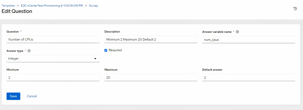 Note: Survey Answer Variable Names must exactly match playbook variables (num_cpus